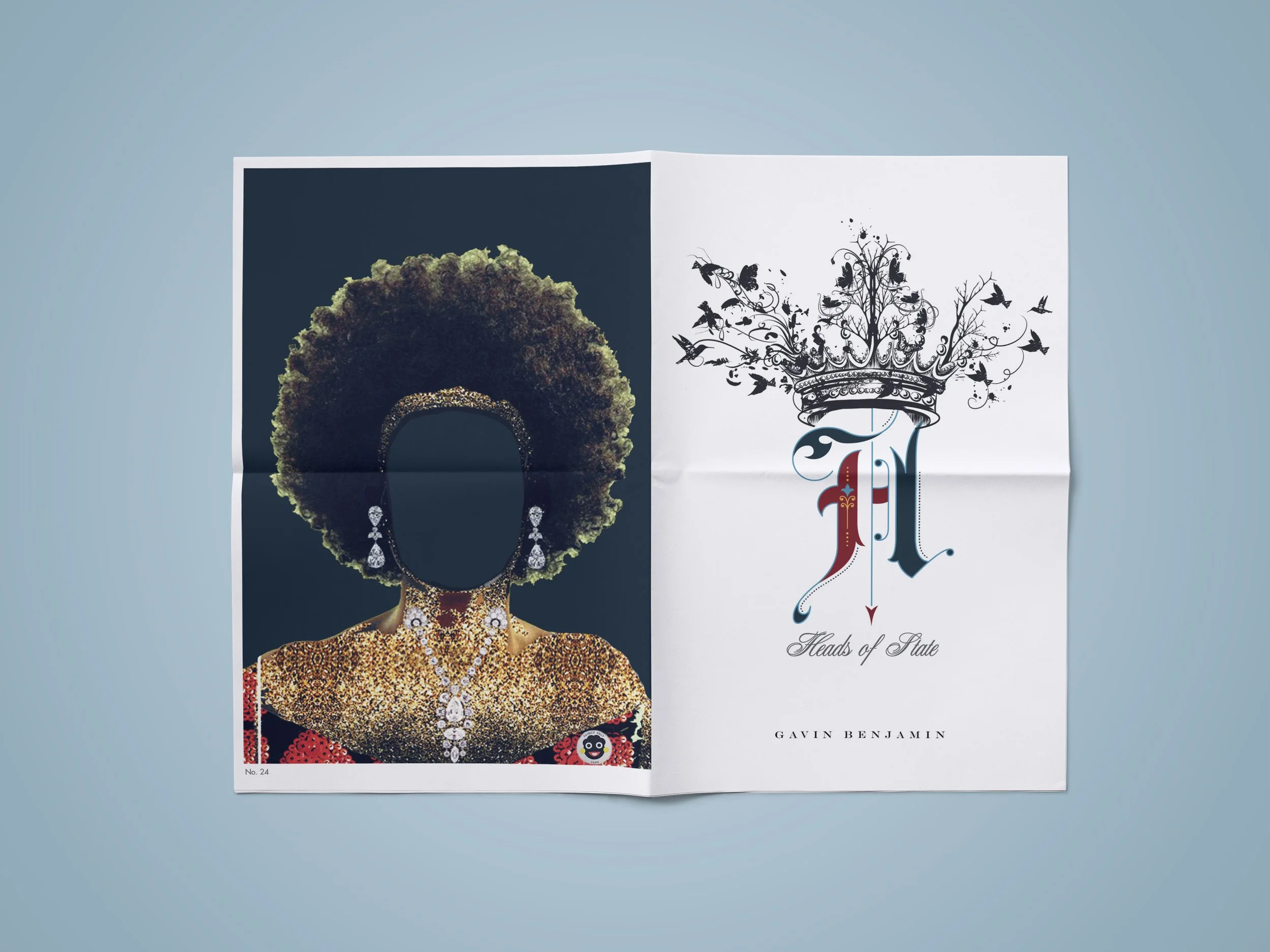 Heads of State is a distinctive limited-edition catalog of artist Gavin Benjamin’s collection of portraits that recast African-Americans as European kings and queens. The large-format catalog was a collectible piece of art sent to collectors, curators, and gallerists.